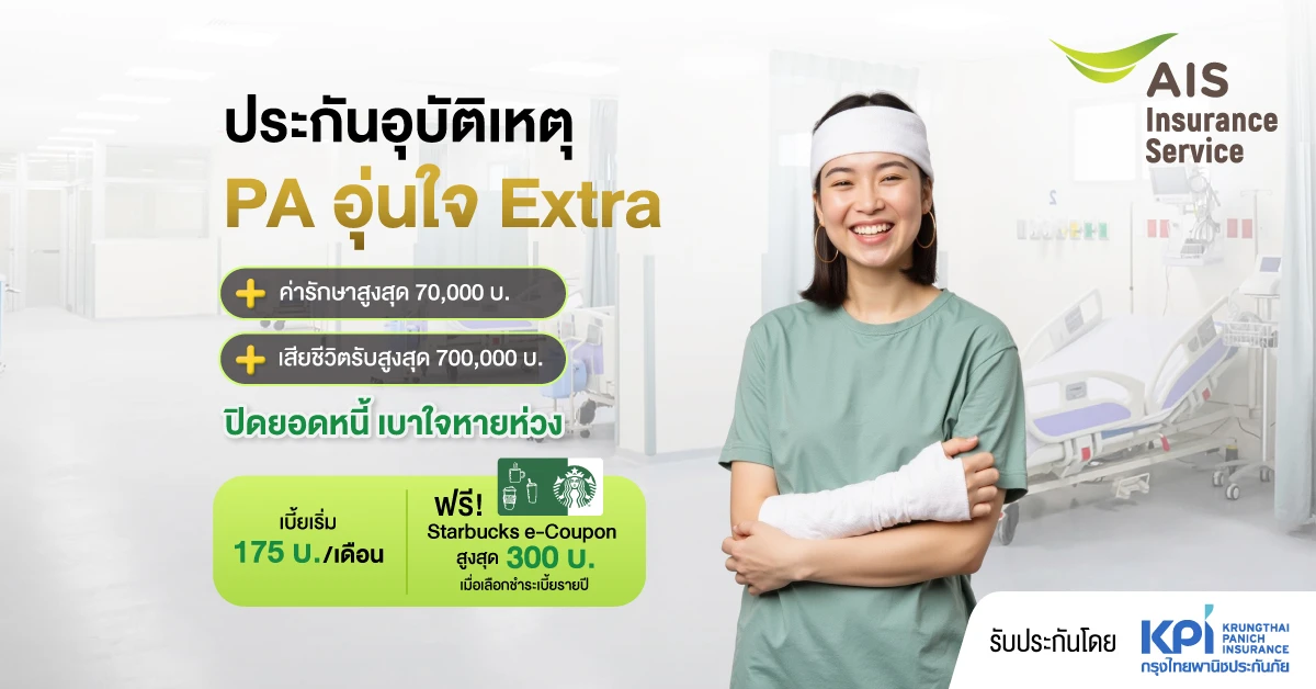 พิเศษ! ลูกค้าที่ซื้อแผนประกัน PA Aunjai Extra และชำระเงินแบบรายปี รับ Starbuck e-Coupon สูงสุด 300 บาท