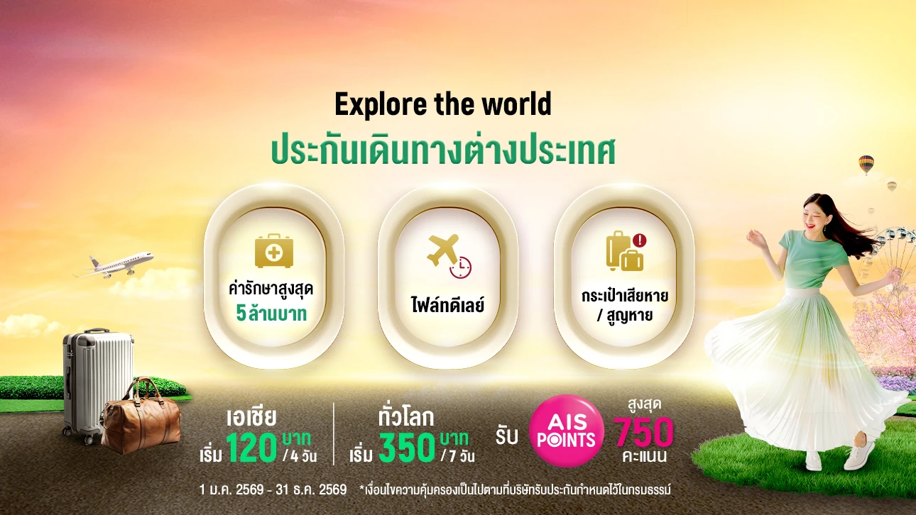 • เพียงซื้อประกันภัยที่เข้าร่วมโครงการ ในระหว่างตั้งแต่วันที่ 1 มกราคม 2569 - 31 ธันวาคม 2569 รับคะแนนสะสมเอไอเอส ดังนี้ ค่าเบี้ยทุก 100 บาท รับคะแนนสะสมเอไอเอส พอยท์ 10 คะแนน รับสูงสุด 750 คะแนนต่อ 1 การสั่งซื้อ